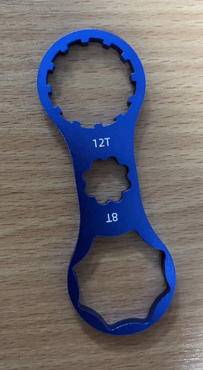 speciální plastový klíč na demontáž a montáž seřizovací jednotky pružení vidlic Suntour