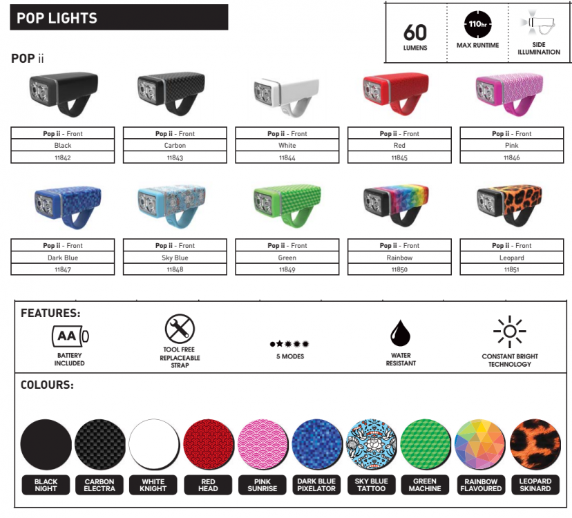 Cool za každé situace? Vyšperkuj svůj bike dvoudiodovým předním LED světlem Knog Pop 2 v originálním kostkovaném designu. Nejenže je 100% voděodolné a má dlouhou výdrž baterií (2x AA, součástí balení). Navíc má výbornou svítivost (60 lm) a 180° úhel kuželu světla. Na rám či řídítka ho namontuješ pomocí vyměnitelného upínacího poutka.