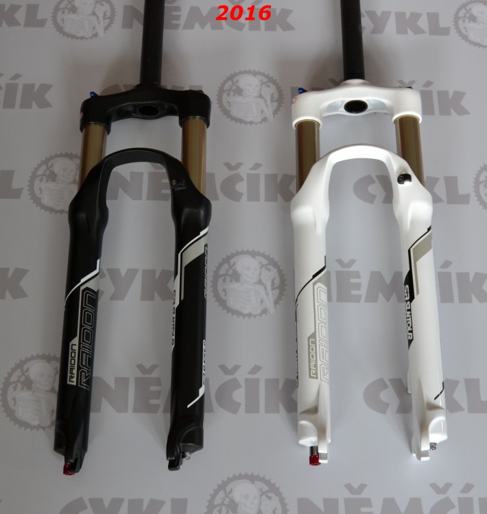 Vidlice: SR Suntour Raidon LO AIR-vzduchová-olejová, 100mm zdvih, černá,bílá, osa 9mm, 2069g,uzamykání z korunky(RL-uzamykání z řidítek +699kč, RL osa 15mm +1500kč)