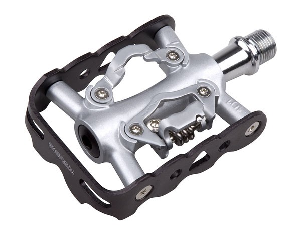 pedál SPD, materiál Aluminium, osa Cr-Mo, gumové těsnění, rozměr 100,5x 63 mm, hmotnost 322 g, kuličkové ložisko, kompatibilní se SHI systémem, nastavitelná vypínací síla