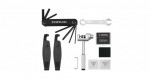 Součásti balení je nářadí se 13 funkcemi. Obsahuje: imbusy 2, 3, 4, 5 a 6 mm, torx klíč T25, křížový a plochý šroubovák, 8 a 10 klíč, nýtovačku na řetěz, sadu samolepicích záplat, montpáky.