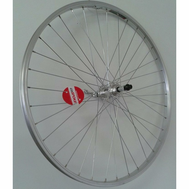Výplet 559/26" zadní, ráfek jednostěnný stříbrný, náboj stříbrný pro 6-7 kol. RU 36